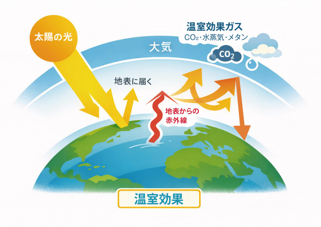 地球温暖化という言葉の背景には、「温室効果」と呼ばれる仕組みがあります。